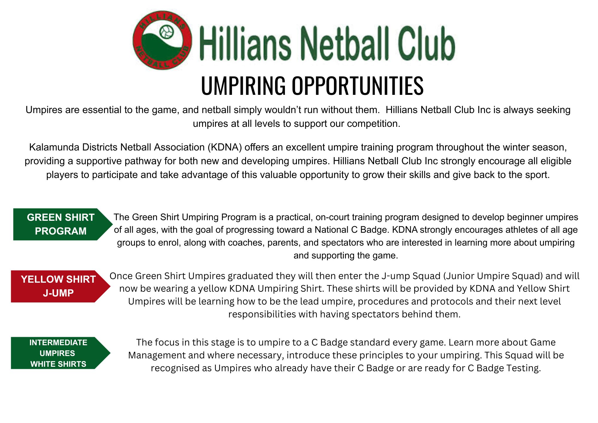 Hillians Netball Club Inc welcomes everyone who wants to be involved in netball — whether as a player, coach, umpire or volunteer.